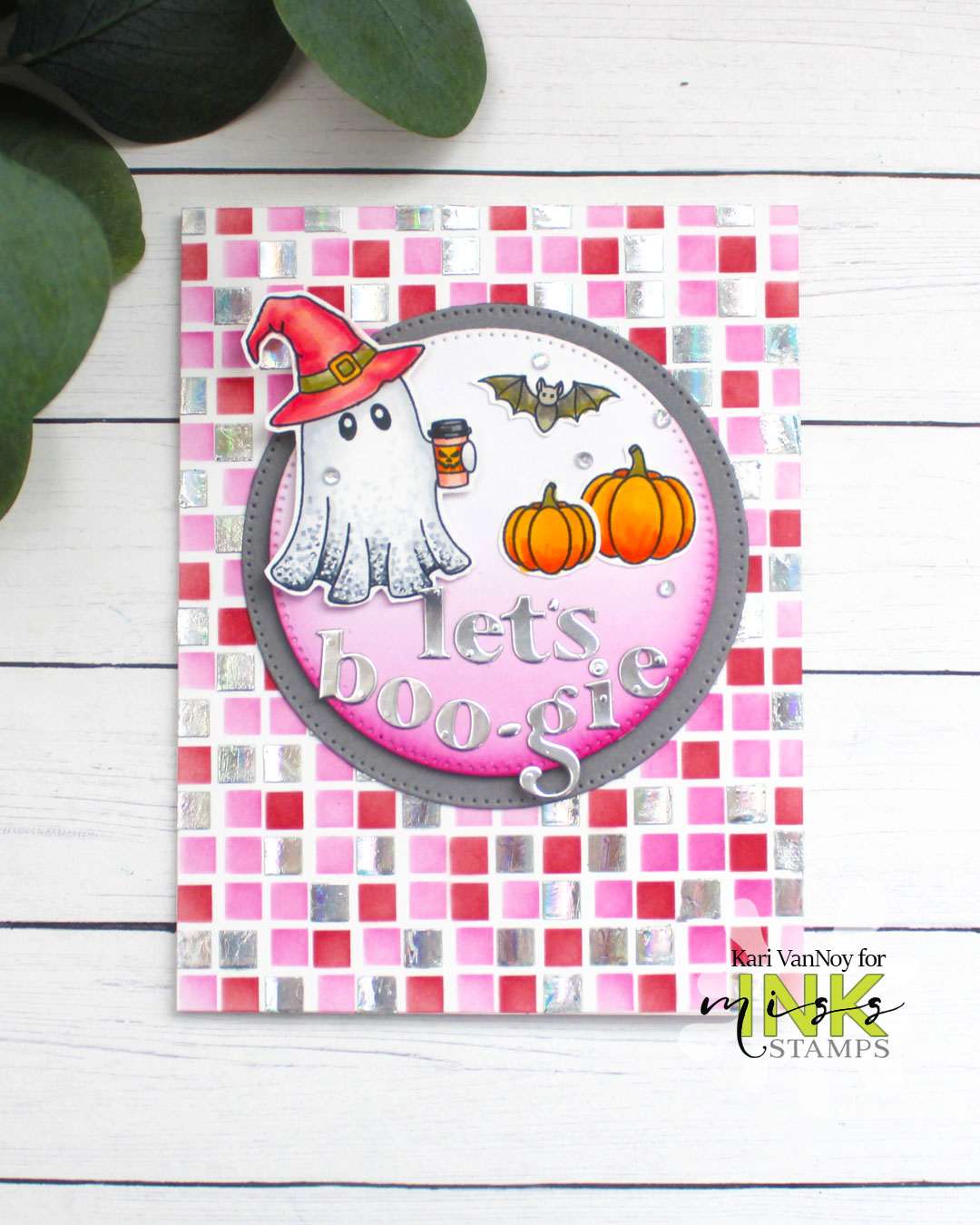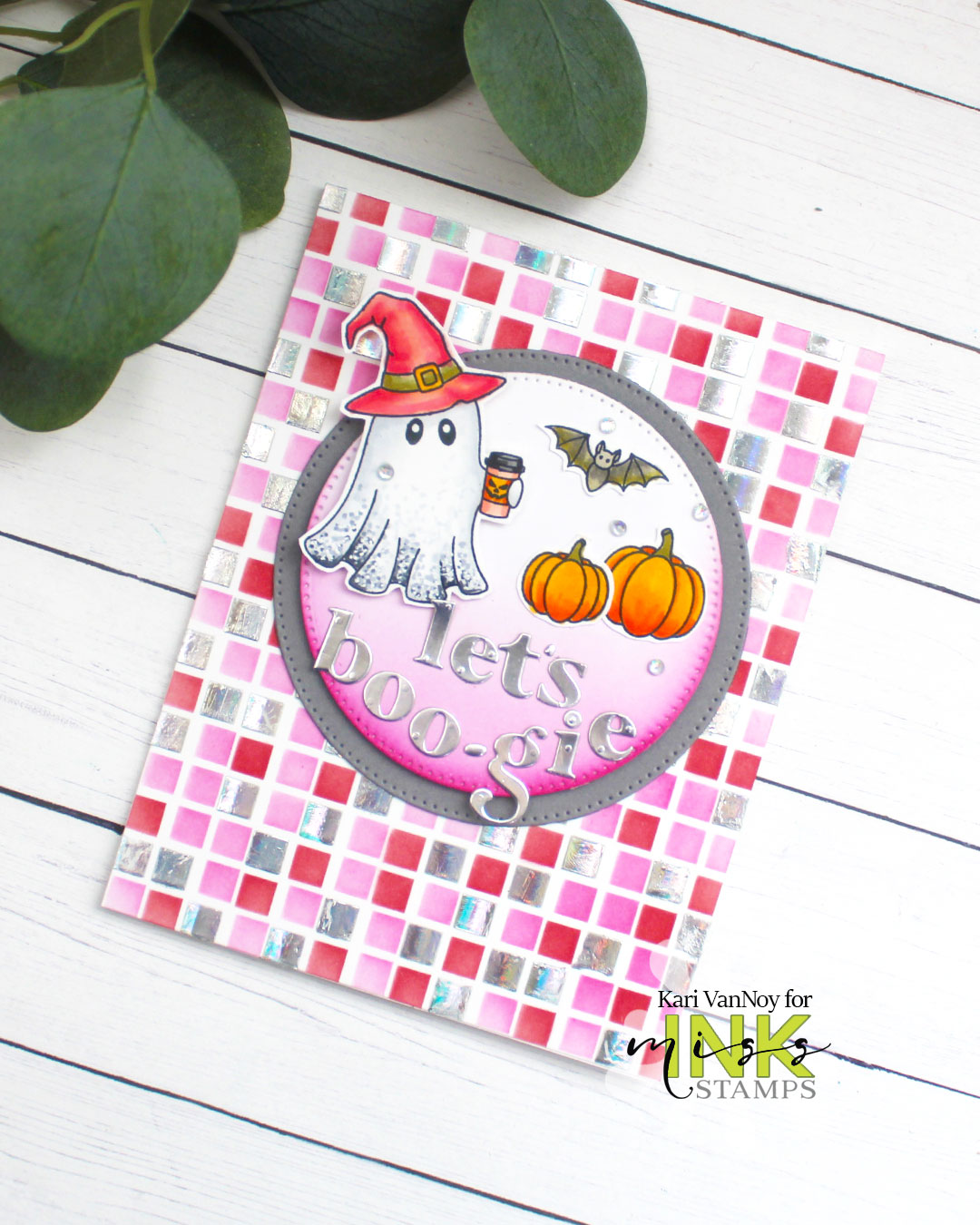 Hello! This ghost wants to dance, so let’s Boo-gie! Today I’m sharing a fun little card with foiling and that adorable ghost from Miss Ink Stamps.