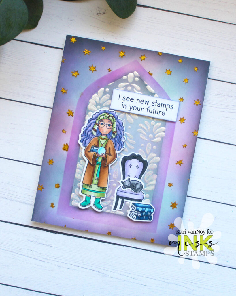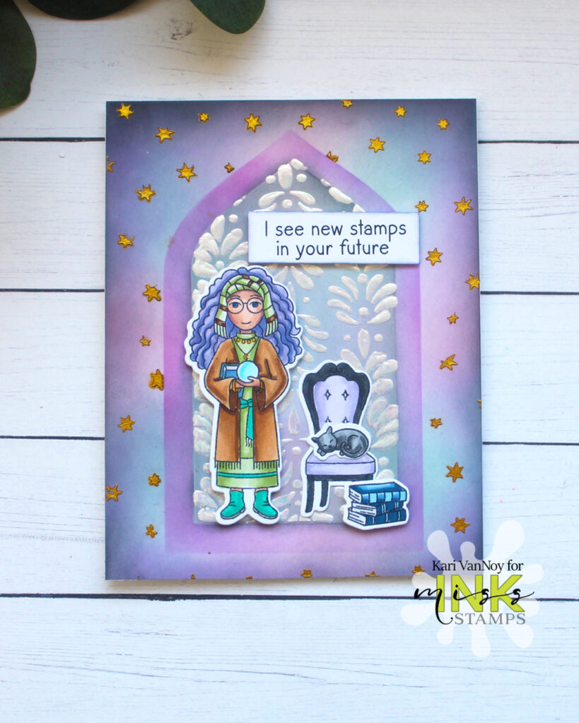 Hello! Today I am sharing a card with the Fortune Teller of Cardmaking and here’s what she predicts: “I see stamps in your future.” Well, I’d say she’s pretty accurate! Lol. I loved making this card, watch the video below or in HD on YouTube: